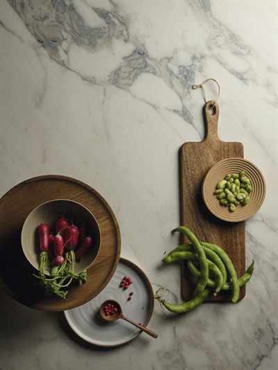 Farven Arabescato 4D har en hvid grundtone med markante årer i grå og lyse nuancer, der skaber et naturtro og marmorinspireret udtryk. De gennemgående årer tilføjer et levende spil, som fremhæver bordpladens dybde og elegance. Arabescato 4D passer perfekt til både moderne og klassiske indretninger, hvor man ønsker et karakterfuldt og stilrent udtryk.