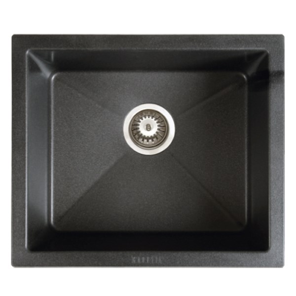Prisbillig Komposit vask. Sammensætning; Ca. 80% granit/quartz og ca. 20% akryl Godstykkelse 7,5 mm. Er farveægte, og påvirkes ikke af sollys