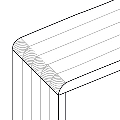 Forkantsprofiler Du har mulighed for at vælge mellem disse 5 forkantsprofiler. Bagkantsprofiler Du har mulighed for at vælge mellem disse 4 bagkantsprofiler. Sargkant Fordoble tykkelsen på din bordplade med en underlimet sargkant. Tilvalgsmuligheder til træbordplader FLOTTE LØSNINGER TIL BORDPLADER I MASSIV TRÆ