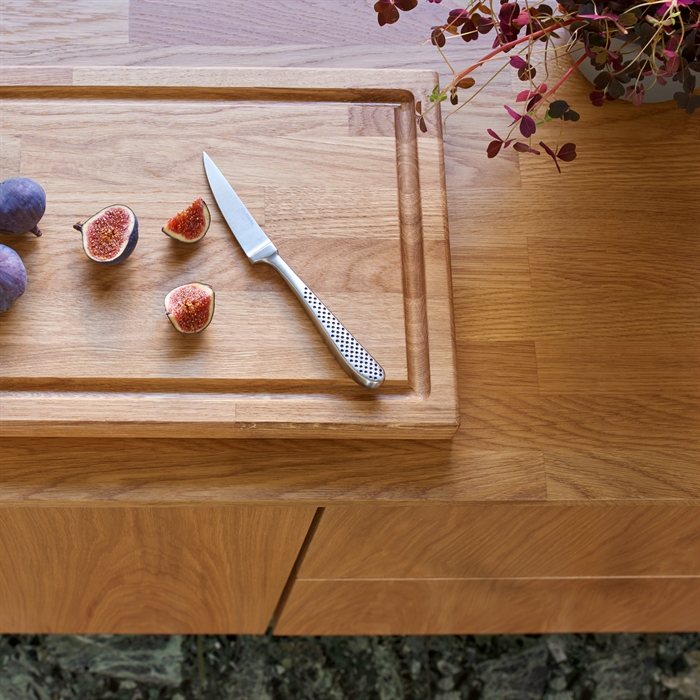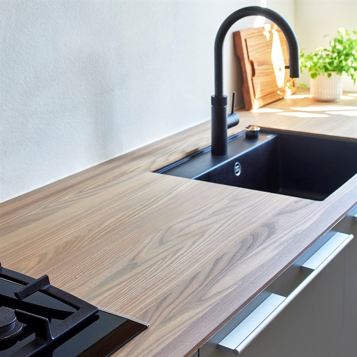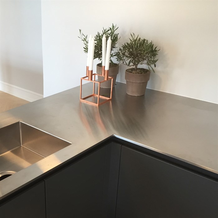 Generel info om træbordpladerEn bordplade i massivt træ er et sikkert valg, der er populært som aldrig før – klassisk, smukt og charmerende – og så er det faktisk slet ikke så svært at holde som rygtet siger.En træbordplade er en klassiker, det giver køkkenet sjæl og varme – det levende materiale rummer sin helt egen historie og med tiden vil den udvikle sin egen patina, der fortæller om dem, der bruger køkkenet. Man finder massive træbordplader i stort set alle typer af køkkener, det klassiske, det moderne, det store og det lille køkken. Træet indgyder en autentisk organisk stemning, hvad enten din stil er Nordisk, Italiensk eller din helt egen, så skaber en træbordplade en fornemmelse af ægthed og soliditet. Visse træsorter er fra gammel tid, kendt for at virke bakteriehæmmende med sit naturlige indhold af syre – som sikrer at selv med lidt ridser og skrammer, skabt hen over tid – vil en massivtræs bordplade stadig være hygiejnisk – og langt nemmere at have med at gøre end mange frygter. Den kan nemt slibes ned og repareres, hvis der skulle opstå skader. Får bordpladen med jævne mellemrum en hurtig oliebehandling, vil den forblive smuk og levende, og vil patinere flot som årene går. Der er mange træsorter at vælge imellem, alle med deres unikke fordele – valget er dit, men du fortryder ikke, at du vælger en bordplade af massivt træ. MaterialebeskrivelseTræ er klassisk, og modsat mange andre materialer er en massiv træbordplade aldrig gået af mode. Samtidig er træ et naturmateriale, som gør, at ikke 2 bordplader er ens, din bordplade er unik, og vil vedblive at være det. Men kan du ikke acceptere naturens luner, er det ikke massivtræ, der skal vælges som bordplademateriale i det nye drømmekøkken.For selv om det ikke kræver daglig vedligeholdelse, skal man alligevel være opmærksom på at træet skal plejes med en god kvalitets olie, for at undgå mange ærgrelser. Men med den rette behandling kan bordpladerne holde mange år og bliver kun smukkere med årene. Massivtræs bordplader fra Bordpladefabrikken.dk har inden levering gennemgået en grundig olieringsproces. Pladerne er blevet grundolieret samt poleret, men de er ikke færdigbehandlet. En træbordplade skal altid behandles løbende med plejeolie for at forblive smuk. Muligheder/begrænsningerVed bestilling af massivtræs bordplader skal du være opmærksom på:• Maximal længde på massivtræ (kan variere alt efter træsort): kortstav op til 600 cm, langstav, typisk op til 3-400 cm. • 160 cm er typisk maksimal dybde på massivtræ. • Minimum 20 cm fra endekant til vaskestart. • Minimum 20 cm fra vask/kogepladeudskæring til samling. • Radius ingen begrænsning. • Maximalt 30 cm frithæng v/30 mm tykkelse. • Maximalt 30 cm frithæng v/40 mm tykkelse. • Maximalt 40 cm frithæng v/60 mm tykkelse. Daglig rengøringBordpladen aftørres dagligt med en blød klud opvredet i rent varmt vand.GenereltTræbordplade skal understøttes for minimum hver 60 cm.Farve og struktur kan variere, da det et 100% naturprodukt. Træet påvirkes af lys, og vil med tiden blive mørkere og mere ensartet i farven. Vi anbefaler ikke at sætte blandingsbatteriet direkte i bordpladen, da træet optager fugt, og det med tiden vil nedbryde pladen. Garantien bortfalder på ubehandlede træbordplader og geringsamlinger. Generel info om stålbordpladerEn stålbordplade udstråler sin helt egen rå power – med sit kølige rene udtryk, står det bare og venter på at blive brugt – Husk på at der i alle industri køkkener er stålbordplader – fordi de er hygiejniske, de er praktiske, og de er nemme at vedligeholde.I det sidste årti er stålbordplader blevet utroligt populære i private hjem – deres rå udtryk, kølige nordiske elegance og ikke mindst fordi de er super praktiske og holdbare, og så ser de bare super cool ud i et stort samtalekøkken. Materialet er yderst modstandsdygtigt, og med den helt lukkede overflade hvor ingen bakterier kan trænge igennem, er det meget hygiejnisk at arbejde på og med – det kan simpelthen ikke gemme på snavs! Stålet gør med sin genspejling af lyset et rum større end det synes – og selv om det er rigtigt flot i et stort køkken, vil et lille køkken også kunne bruge denne egenskab til sin fordel. Miks stålet med rå beton eller en klassisk laminat og skab din helt egen industrielle køkkenstil – en ting er sikkert – alt kan mixes med stål. Ofte bliver stål lagt ned i massive træbordplader omkring vådområder for at skåne træet – og det kolde stål spiller smukt sammen med det varme træ. Standard rustfri stålbordpladeEn traditionel rustfri stålbordplade er bygget op af to 1,2 mm plader i rustfrit stål, som er limet omkring en kerne af spånplade. Denne type fås i mange forskellige tykkelser og med mange forskellige for- og bagkanter. OBS: Ikke varmebestandig, da meget høje temperaturer kan opløse limen og få pladen til at løsne sig.Massiv stålbordpladeEn massiv stålbordplade er en tynd (5-8 mm.) massiv stålplade. Massive stålbordplader er tungere, mere elegante i udtrykket og mere varmebestandige.Muligheder/begrænsningerVed bestilling af Stål bordplader vær opmærksom på følgende:• 290 cm er maximal længde på stål uden samling. • 130 cm er maximal dybde på Stål uden svejsning. • Minimum 6 cm fra endekant til vaskestart. • Minimum 20 cm fra vask/kogepladeudskæring til samling. • Minimum radius R5 cm, kun v/ glat kant. • Maximum 20 cm frithæng v/12 mm tykkelse. • Maximum 30 cm frithæng v/24 mm tykkelse. • Maximum 35 cm frithæng v/30 mm tykkelse. • Maximum 35 cm frithæng v/40 mm tykkelse. Daglig rengøringDen daglige rengøring består blot med rent varmt vand og en hårdt opvredet klud.Stålplader bør herefter aftørres med en tør klud, for at undgå kalkaflejringer. Rustfrit stål kræver ingen særlig vedligeholdelse, er uforgængeligt og ikke mindst meget hygiejnisk. GenereltSt