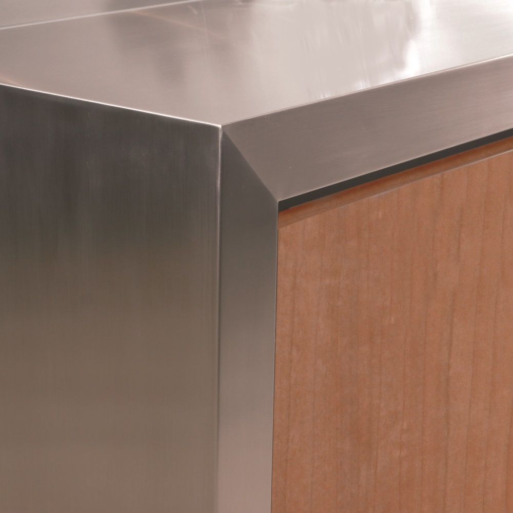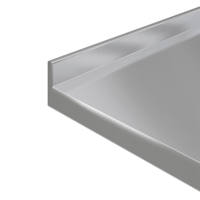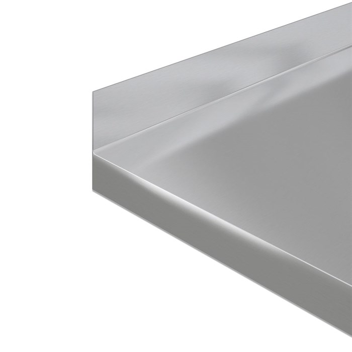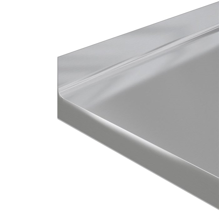 Forkantsprofiler Du har mulighed for at vælge mellem disse 5 forkantsprofiler. Bagkantsprofiler Du har mulighed for at vælge mellem disse 4 bagkantsprofiler. Sargkant Fordoble tykkelsen på din bordplade med en underlimet sargkant. Tilvalgsmuligheder til stålbordplader FLOTTE LØSNINGER TIL BORDPLADER I STÅL