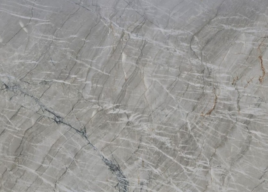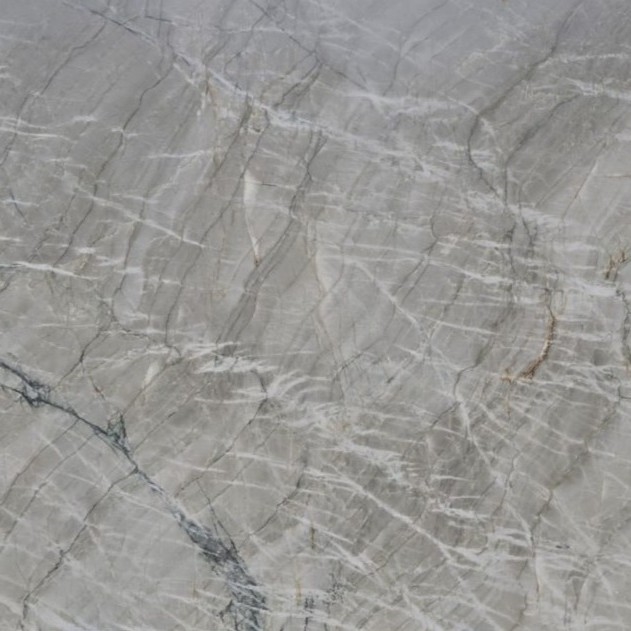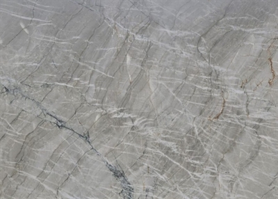 En Quartzite bordplade i farven Gabana har en kølig grå grundtone med bløde nuancer i lys grå og beige samt markante, lyse åretegninger. Farven fremstår rolig og elegant, mens det naturlige årespil giver overfladen et eksklusivt, marmorlignende udtryk med tydelig dybde og karakter.