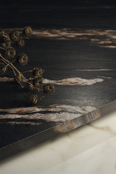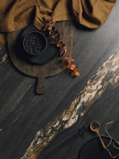 Denne bordplade er skabt med innovativ 4D-teknologi, der forener enestående holdbarhed med et naturtro design. Den unikke lagopbygning giver en granitlignende struktur og resulterer i en keramisk bordplade med et gennemført, ensartet udtryk hele vejen igennem. Årestruktur, farvespil og mønstre løber igennem hele materialet og ses tydeligt både på overfladen og i kanterne.