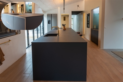 3366 Luna sort sten-look kompaktlaminat bordplade med sort kerne er en flot, sort kompaktlaminat bordplade, som ligner stenmateriale til forveksling. 3366 Luna med sort kerne har en fin overfladestruktur med ”åreaftegninger” ligesom ægte natursten, og bordpladen er på én gang både elegant og rå i sit udtryk og er en virkelig populær kompaktlaminat køkkenbordplade. Luna 3366 kompaktlaminat har desuden en sort kerne, der gør det massive sten-look endnu mere overbevisende. 3366 Luna sort sten-look kompaktlaminat med sort kerne fås i tykkelsen 12 mm.