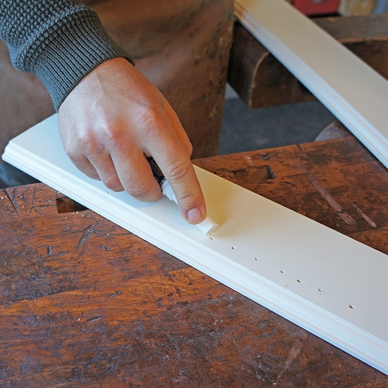 Fyld skaden med voks. (Tip: Hold ved spidsen af voksstiften for at undgå brud).