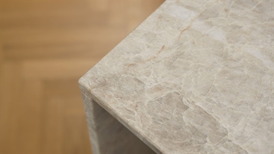 En Quartzite bordplade skæres direkte fra klippen, hvilket betyder, at to bordplader ikke er ens. Quartzite er et naturligt materiale, der er dannet gennem mange millioner år. Quartzite kaldes en metamorf sten, der primært består af mineralet quartz. Selvom Quartzite ofte er lys i farven, kan mineraler i grundvandet ændre både farven og strukturen på mange af stenene, hvilket skaber en flot og varieret overflade. Årestrukturen og farvespillet vil derfor være forskelligt fra plade til plade. Quartzite er et materiale, der er lige så hårdt som granit, men med farver og mønstre, der minder om marmor.
