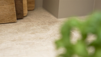 En Quartzite bordplade i farven Taj Mahal har en sand/beige overflade med mørke åretegninger. Taj Mahal er både stilren og moderne, og den flotte marmorlignende overflade skaber et elegant og luksuriøst udtryk.